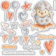 Si vous aimez scrapbooking et que vous voulez faire des pages uniques et belles, ce jeu d'autocollants est parfait pour vous. Les images en gris et orange sont parfaites pour les pages de baby shower neutres ou la création de cartes. Le petit oiseau coule juste de son oeuf gris avec des points d'orange. Les autres éléments à coordonner avec cet ensemble spécial sont les ballons, les coeurs et les bonbons. Personnalisez le texte avec vos propres informations. Tout le texte est personnalisable. Voulez-vous changer ce design ? Cliquez simplement en personnaliser pour réorganiser les éléments, éliminer le texte, ajouter du texte ou modifier les tailles ! Illustrations de Patricia Alvarez.