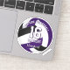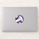 Cet autocollant de volleyball couleur équipe pour filles ou garçons présente l'image réaliste d'un volleyball qui a des panneaux violets, noirs et blancs - customisez le nom du joueur, le numéro de maillot, le nom de l'équipe et le nom de la mascotte - par katz_d_zynes