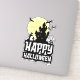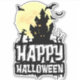 Happy Halloween dessin de texte avec maison hantée, de cimetière et de chauve-souris décoration à pleine lune sur arrière - plan blanc