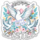 Joyeux Pâques ! avec une image colorée et joyeuse du printemps, avec des colombes et des fleurs.