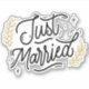Stickers Just Married Stickers sont découpés à la forme exacte de votre image et fabriqués à l'aide d'un processus de coupe personnalisée (baiser-cut) sur des feuilles de vinyle