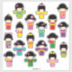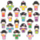 Ce pack de 18 autocollants propose des poupées Kokeshi japonaises en kimonos colorés.