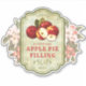 This beautiful Apple Pie Filling Label has a cozy vintage feel that really make your canned goods out. The apple pie label feobjets apple blossoms on the left and right of the decorative green label. There are a bunch of apples at the top and a place to add a name The text on the label reads "homemade apple pie filling" in red with a flourish and the date below in green.