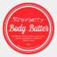 This sticker is a label for strawberry body butter. Use this sticker on your handmade products such as gifts for family, for use at markets and fetes or for a small business venture you're growing.