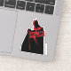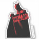 Image stylisée rouge de Batman tenant sa cape avec le logo du théâtre Batman sur le dessus.