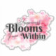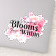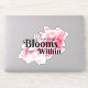 Il s'agit d'un autocollant inspirant qui peut être utilisé pour décorer une variété de choses. Le design est de fleurs roses avec la citation "Le bonheur fleurit de l'intérieur" sur elles.