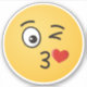 Un émoticône embrassant. Un oeil est ouvert, l'autre est en train de se mettre en route. Un coeur est montré en quittant la bouche qui s'embrasse.