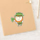 Le dessin humoristique leprechaun porte un casquette vert et un costume, a une barbe de gingembre et tient un shamrock chanceux.