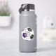 Cette équipe colore l'autocollant de football pour les garçons ou les filles présente l'image réaliste d'une balle de football qui a des panneaux violets, noirs et blancs - customisez le nom du joueur, le numéro de maillot, le nom de l'équipe et le nom de la mascotte - par katz_d_zynes