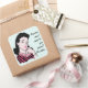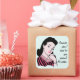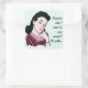 autocollant carré avec l'image d'une femme de la brunette les années 50 avec son doigt sur le menton comme prêt à express une pensée sur la menthe. Texte personnalisable Voir la balise de faveur et le étiquette correspondants. Voir l'ensemble de la collection Nifty les années 50 Sticker en INVITATION | Section Stickers & Étiquettes.