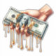 femmes main tenant des billets de 100 dollars goutte d'or liquide argent comptant art grand autocollant