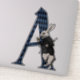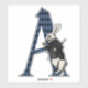 Monogramme / lettre / initiale "A" dans un motif en diamant vintage en arlequin noir et bleu avec l'illustration vintage du lapin blanc du livre pour enfants Alice in Wonderland. Amusez un gros autocollant de vinyle pour les ordinateurs portables, l'électronique et toute autre surface qui convient pour les autocollants transparents et les étiquettes (même les miroirs!)