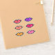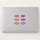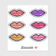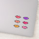 Six autocollants en vinyle kitsch aux lèvres brillantes : violet, rose chaud, rose, rose corail, pêche et jaune doré.