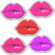 Pack de 6 autocollants de lèvres brillantes dans différentes formes et nuances de rouge à lèvres.