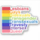 Cette conception est composée d'un arc-en-ciel et des mots Lesbienne, Gay, Bisexuel, Transgenre, Transsexuel, Travesty, Intersex et Queer.