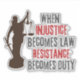 L'étiquette de l'ordinateur portable avec la justice sociale populaire cite "quand l'injustice devient loi, la résistance devient devoir" dans un texte grossier avec la silhouette de la justice de dame. La citation sur l'égalité des droits a été attribuée à beaucoup, y compris Thomas Jefferson et RBG, et est un cri de bataille d'activistes à travers le monde.