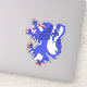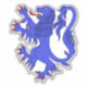 Ce dessin de Richard H. Fay présente un azure rampant de lion héraldique, un lion bleu dépeint en profil remontant sur ses pattes arrières, prêt à déjouer tous les agresseurs.