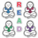 LIRE les gens lire des livres Bibliothèque et autocollants d'alphabétisation Chaque autocollant est séparé et peut être réorganisé et redimensionné
