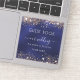 Sticker seulement ! Un autocollant à utiliser si vous avez déjà un livre d'or. Arrière - plan bleu marine, décoré de pétillants dorés. La couleur bleue est inégale. Personnalisez et ajoutez vos noms et la date du mariage.