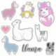 Autocollants lamas adorables et mignons dans divers styles et couleurs.
