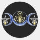 Joyeux Yule tout le monde ! ! La triple lune lunaire, cireuse, pleine et déclinante, avec la spirale triple au centre, et deux pentagrammes d'argent. Un design élégant sur fond noir éclairé aux bougies. Un grand cadeau pour Wiccans et Neo-Pagans.