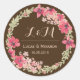 Vintage et rustique mariage à couronne florale merci sticker. Décoré avec des dessins aquarelles de fleurs, feuilles et baies. Monogramme autocollant pour les sceaux de mariage ou d'enveloppe faire-part de mariage. Customiser le libellé pour toute occasion spéciale. Bonsoir de printemps, étiquette de douche nuptiale, fête d'anniversaire, dîner fiançailles, baby shower et bien plus encore. La couleur de l'arrière - plan peut être changée pour le thème souhaité.