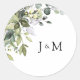 Sticker Classic Mariage Verdoyant Rond. Cette invitation de mariage élégante et élégante présente de magnifiques aquarelles peintes à la main, une végétation fleurie d'eucalyptus. Trouvez les articles correspondants dans la collection de verdure florale Eucalyptus Aquarelle.