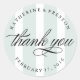 Mettez la touche finale sur vos faveurs de mariage avec cet autocollant rond classique avec des rayures verticales, vos noms et date mariage, et "merci" dans un script élégant.