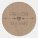 Un autocollant de mariage en plein air, illustrant un coeur entre deux flèches. L'Arrière - plan est d'inspiration papier brun. Personnalisez le texte avec vos noms.