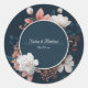 Cet élégant autocollant à mariage floral bleu présente un riche arrière - plan de marine entouré de feuilles roses délicats, de pivoines blanches douces et de fleurs de jardin somptueux. Le contraste harmonieux des tons sombres avec des accents floraux romantiques apporte un charme sophistiqué et intemporel à votre événement spécial. Parfait pour sceller les invitations de mariage, décorer des sacs de faveur ou améliorer les cartes de remerciement, ce design d'autocollant rond offre une touche classe pour toute occasion. Entièrement personnalisable, il peut être utilisé au-delà des mariages, pour des douches nuptiales, des anniversaires ou des emballages cadeaux personnalisés. Que vous ajoutiez des initiales, une date ou un court message, ce design s'adapte à merveille à vos besoins, mélangeant romantisme et style dans une pièce polyvalente.
