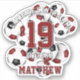 Cet autocollant de football esprit d'équipe pour les garçons ou les filles présente l'image d'un groupe de marron de taille variée, de boules de football noir et blanc, sur lequel vous pouvez customiser le nom du joueur, le numéro de maillot, le nom de l'équipe et le nom de la mascotte - par katz_d_zynes