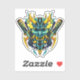 Ce design complexe présente une réinvention futuriste d'un masque Oni japonais traditionnel. Le masque est doté d'un visage cybernétique menaçant, aux yeux jaunes brillants et aux cornes acérées. Des éléments métalliques et des fils ornent le masque, suggérant une fusion de mythologie ancienne et de technologie moderne. Deux épées de samouraï stylisées encadrent le masque, ajoutant au sentiment général de puissance et d'agression. La palette de couleurs bleu et or crée un contraste visuel saisissant.