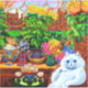 Autocollant représentant la peinture animale de Louis Wain Maître du Collège des Chats (1860-1939). Un chat blanc réfléchi aux yeux bleus saisissants se tient à côté d'un assortiment vibrant de belles fleurs. Le majestueux collège de chats se dresse dans l'arrière - plan sous un ciel rose et bleu. Un cadeau merveilleux pour l'art amoureux des chats et anglais.