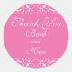 Il s'agit du Sticker de Merci de coordination pour la ligne mariage Candy Pink Swirls. C'est la taille parfaite pour les faveurs de remerciement. Il peut facilement être réduit pour les scellés d'enveloppe de carte de remerciements. Dites-moi si je peux vous aider.