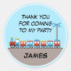 L'autocollant d'anniversaire de ce garçon comporte un joli train rouge, bleu et jaune sur un arrière - plan bleu et marron. J'ai été inspiré par les dessins de tissu pour enfants et les illustrations de livres pour cet autocollant. La couleur est vive et l'image est simple. L'autocollant d'anniversaire de train de ce garçon est particulièrement adapté à une fête d'anniversaire de thème de train et peut être utilisé pour quelques âges. Même carte d'anniversaire design, invitations et plus sont disponibles au magasin.