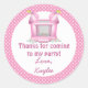Personnalisez votre sac à dos de fête d'anniversaire ou des faveurs avec ces autocollants de Merci de maison gonflable amusant. Correspond parfaitement à nos invitations de coordination du même design. Doté d'un château gonflé coloré et gonflé bondissant maison dans de jolies nuances de rose et de pois. S'accorde parfaitement avec notre invitation à la fête correspondante :