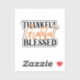 Cet autocollant simple mais significatif à base de texte comporte l'expression inspirante "Merci, Grateful, Blessed" dans la typographie élégante. Parfait pour célébrer la gratitude, la foi et l'esprit de la saison de Thanksgiving, cet art littéraire minimaliste est idéal pour les thèmes d'automne, les styles rustiques et l'esthétique moderne des fermes. Le design met l'accent sur la simplicité, la chaleur et la réflexion, ce qui est idéal pour quiconque aime les mots inspirants et les sentiments saisonniers.