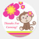 Cet autocollant à thème Monkey Girl peut être utilisé comme un autocollant de remerciement pour mettre des sacs de faveur ou le texte peut être changé pour convenir à presque n'importe quel usage - bouteilles d'eau, lollipops, bonbons jarres, bougies etc. Coordonner les invitations, les notes, et les timbres-poste également disponibles. Merci à Belen Martindale d'Etsy pour les graphismes.