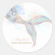 Queue de sirène Anniversaire Sticker Merci rond Aquarelle Queue de sirène dans les tons vert de mer, rose, or étincelants et bleu avec des taches de couleur d'eau et des flocons d'or
