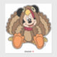Cette magnifique illustration montre Mickey Mouse dégustée en dinde Thanksgiving, avec une queue pleine plumée et un masque de visage de dinde. Le sourire classique de Mickey et le costume ludique créent un design de caractère amusant et festif, parfait pour les célébrations de Thanksgiving. Les riches bruns du costume et les couleurs chaudes de l'automne rehaussent l'esprit des fêtes, ce qui en fait un adorable ajout à toute décoration festive ou événement pour enfants.
