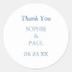Cet élégant autocollant minimaliste en Merci est facile à personnaliser avec les noms du couple et la date du mariage, en utilisant le modèle de personnalisation en ligne avant de commander. Le libellé "Merci" de l'en-tête est également facile à personnaliser en ligne avant de commander, en coque vous souhaitez le changer à un autre libellé.