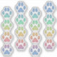 16 autocollants empreintes de pattes de chien dans les teintes arc-en-ciel pour arranger dans votre propre design.