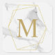 Arrière - plan en marbre gris avec cadre géométrique pointillé doré et monogramme serif personnalisé