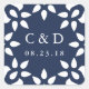 Scellez vos enveloppes de faire-part de mariage, faveurs et plus encore avec nos élégants autocollants d'inspiration marocaine en bleu marine et blanc. Le design carré arrondi comporte vos initiales et la date mariage entourée d'une bordure géométrique en blanc sur un arrière - plan bleu marine classique. Coordonnée avec notre collection de faire-part de mariage arabesques en marine.