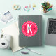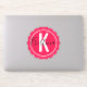 Autocollant personnalisé accrocheur avec votre unique initiale et nom sur un arrière - plan rose chaud.