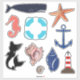 Des autocollants côtiers nautiques de différentes formes, dont une baleine, une sirène, une étoile de mer et des coquillages.