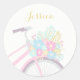 Sticker Monogram Flower Bicycle Cute Pastel. Vélo rose aux fleurs pastel, baies et feuilles (rose, bleu, turquoise, doré). Frais, mignon et hipster.