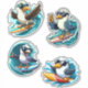 Mouettes. Ces surfeurs cool de mouettes sont en mode vacances, chevauchant des vagues et portant des lunettes de soleil. L'un d'eux est si cool qu'il a même eu le temps de faire le signe de "paix" !