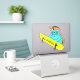 La colle n'est pas très collante. Le point positif est que le collant s'enlève facilement. Le point négatif est que les côtés "frisent" un peu, je l'ai collé sur mon ordinateur et quand je le met et l'enlève de mon sac, ça abime un peu les rebords. Mais ça tient quand même depuis quelques semaines sans problème, c'est juste les côtés qui sont un peu abimés. Je suis très satisfaite de la qualité de l'impression. Les couleurs sont fantastiques et tiennent bien le coup.