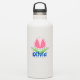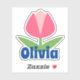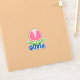 fleur de tulipe rose avec autocollant de nom feuille vert, facilement personnalisée avec votre nom.